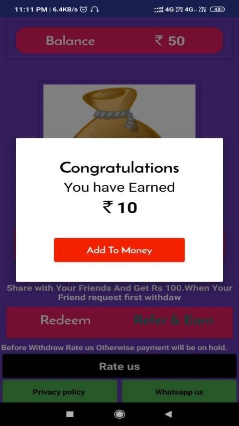It is a simple and easy money making app. Luck by scratch is easy an application through with you can play at the same time earn some money. User no need to login or sign up with Social account .