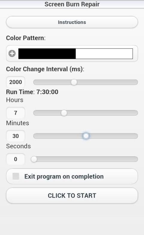 Apakah perangkat Android Anda telah layar terlihat membakar (Screen burn-in)? Layar Bakar Perbaikan dapat membantu layar tes dan perbaikan layar terbakar. Cukup memilih pola tes, kecepatan, mengatur timer dan biarkan berjalan.