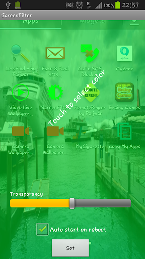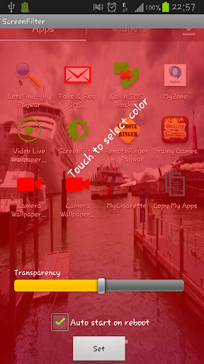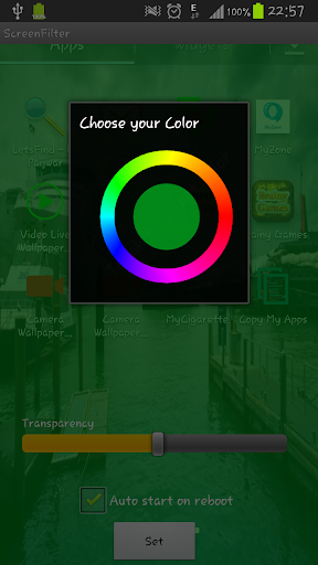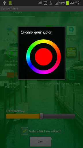 Screen Filter applies a color layer on top of your screen to increase or decrease brightness/contrast based on your color of selection.