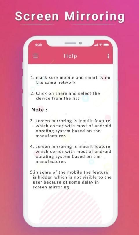 Aplikasi Screen Mirroring akan membantu Anda untuk memindai dan mencerminkan ponsel Android Anda atau layar tab di smart TV / Display (mira cast diaktifkan) atau dongle atau adapter nirkabel.