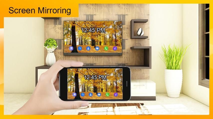 screen mirror your phone screen to smart TV. Screen Mirroring connect your phone screen to tv. Screen Mirroring used to play videos song and play game it will Display Phone Screen On smart TV.