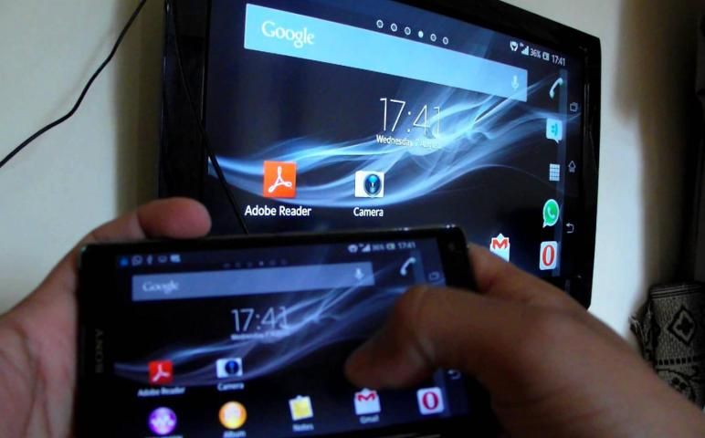Layar Mirroring hanya bisa bermain isinya tetapi mengirim layar seperti seperti HDMI, MHL, Miracast dan Chromecast. Telah diuji dan bekerja pada sebagian besar ponsel android.