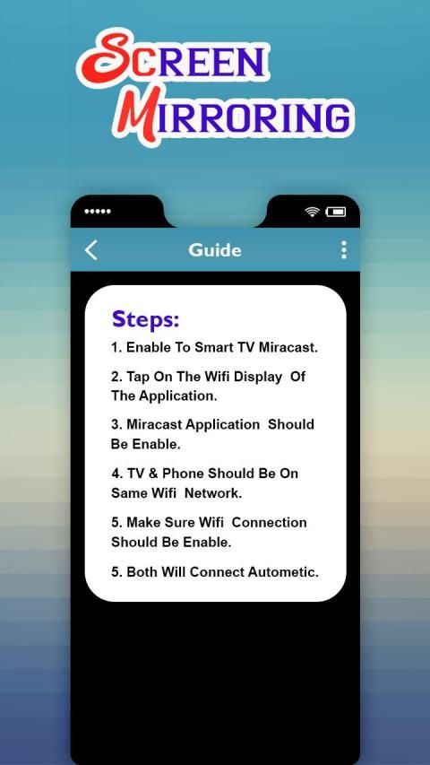Screen Mirroring - Mirror Screen App will assist you to scan and mirror your android phone or tab's screen on smart TV/Display or Wireless dongles or adapters.