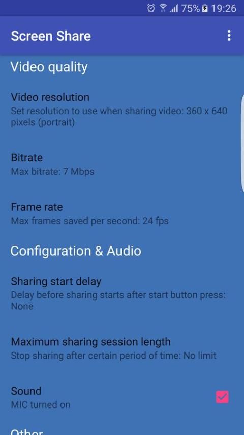 Layar aplikasi Share melakukan persis apa yang dikatakannya. Anda dapat berbagi layar perangkat Android Anda dan microfon suara Anda untuk beberapa perangkat lain