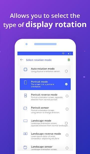 ⚡ Screen rotation control- Lock screen rotation, screen rotation app allows you to select the type of display rotation screen control, change screen on the phone's Tap, also can choose the type of display Shortcut to be more convenient. Screen rotation control- Lock screen rotation, screen rotation app is extremely convenient.