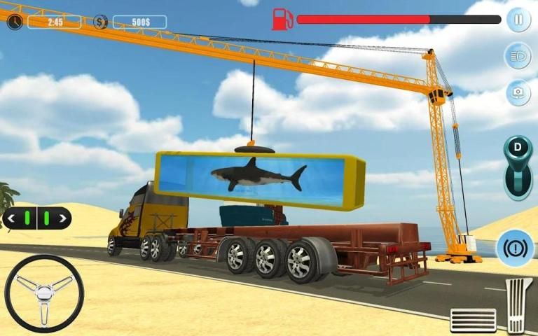 Pick up keys of your truck, ignite heavy-duty engine and join truck with trailer. Drive truck trailer to marked parking place, complete crane operations for loading. Rush with care because your container is made of glass and having liquid inside that is lifeline for living creatures. So never try rash driving and take risk for valuable sea animals’ lives. Fuel stations are on your way, refill fuel before it ends and you are out of fuel.