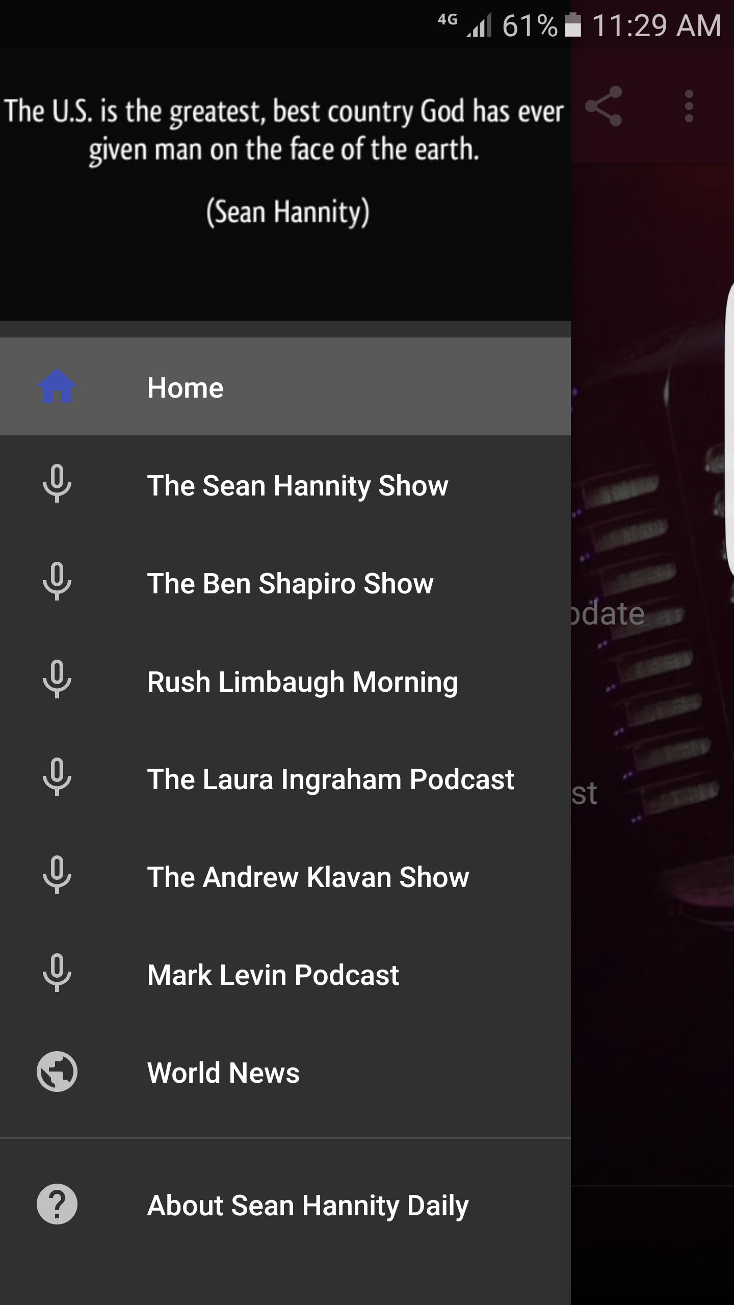 Stay updated on Sean Hannity radio show on Cumulus Media Networks and Premiere Radio Networks. If you are Conservative, this Sean Hanity app is a good way to keep up with politics, policies and news that matters to and even if you are not a conservative American it's still a good way to get to understand how the right wing operates.