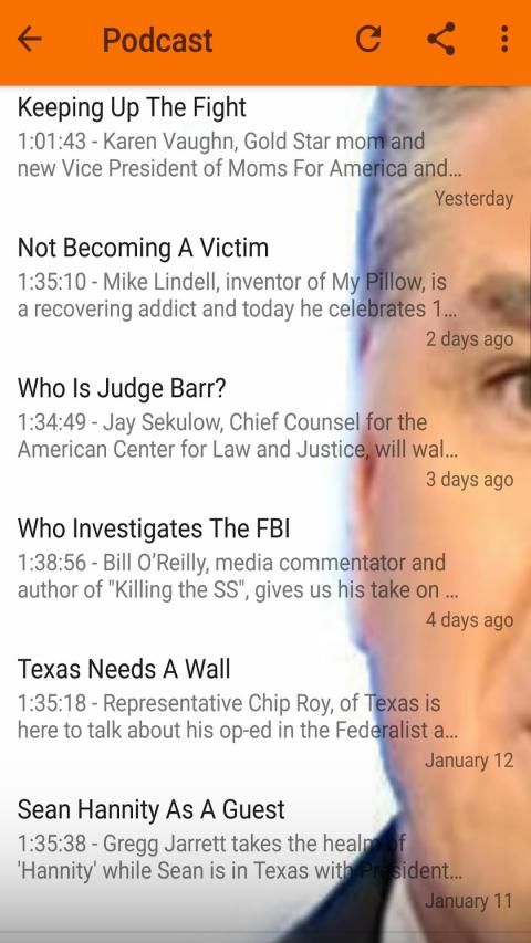 Tetap diperbarui di acara radio Sean Hannity di Cumulus Media Networks dan Premiere Radio Networks. Jika Anda Konservatif, aplikasi Sean Hanity ini adalah cara yang baik untuk mengimbangi politik, kebijakan, dan berita yang penting bagi dan bahkan jika Anda bukan orang Amerika yang konservatif itu masih merupakan cara yang baik untuk memahami bagaimana sayap kanan beroperasi. Aplikasi ini juga membawa berita terkini dari seluruh dunia ke ponsel Anda