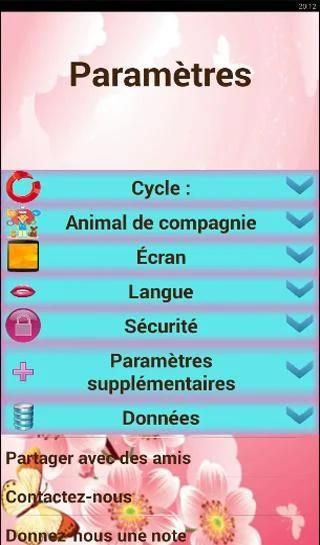 Ini catatan siklus teratur, kemungkinan ovulasi kehamilan Anda. Periode tracker adalah untuk semua femmes.Il mencatat bawah periode teratur dan tidak teratur. Ini trek yang aman seks, BMI, suasana hati, suhu, gejala atau berat. Ini seperti sebuah diary pribadi wanita itu kemudian. Ini membantu Anda tetap bugar. Ini membantu Anda menurunkan berat badan.