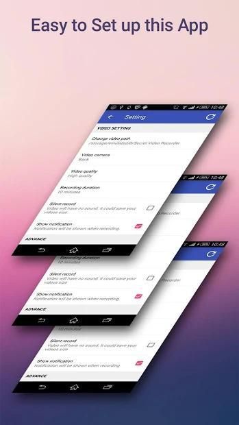 Hanya satu sentuhan untuk merekam instan, jadwal rekaman, rekaman kamera SMS, atau merekam otomatis. video HD. Melanjutkan perekaman ketika layar off sementara kamera detektif atau kamera layar kunci Banyak fitur yang berguna.