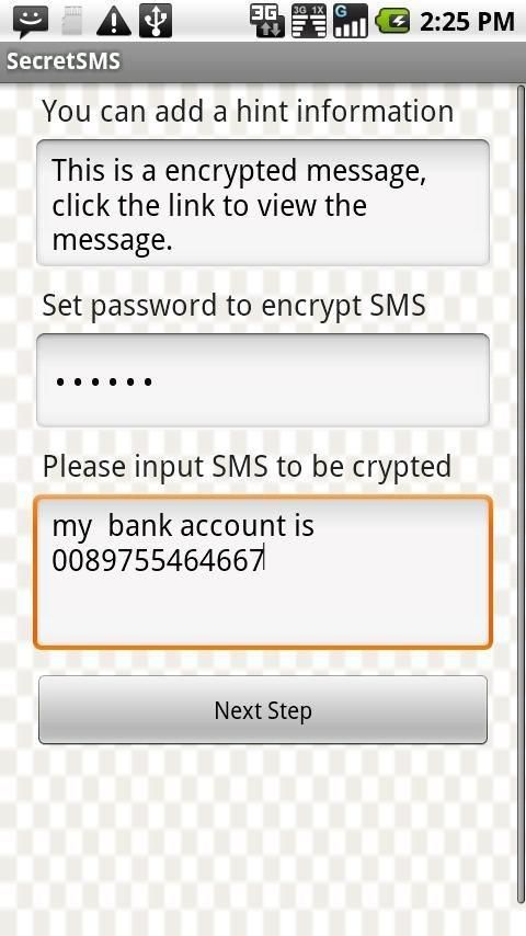 o you ever send sensitive data via SMS such as credit card info, confidential data and password? Do you think that someone is spying on you? All you need is the SecretSMS. It encrypts regular text into cipher-text that can not be visible without proper password. The receivers need not install any software on their phones.
