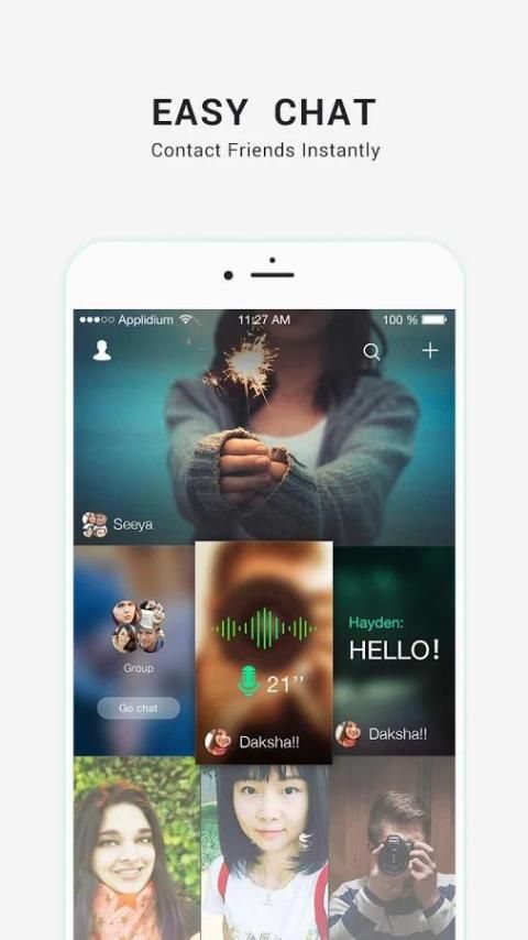 Anda dapat chatting dengan teman-teman 1-on-1 atau dalam grup chat. Mendukung pesan multimedia: video, gambar, teks dan suara semua tersedia.