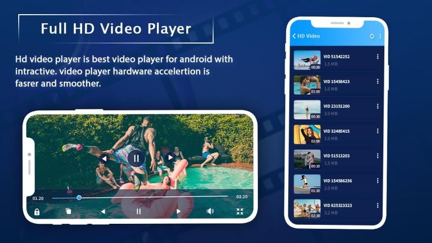Pemutar Video HD Terbaik memutar semua format video dengan lancar. Ini mendukung video HD, full HD & 4K. Anda dapat menikmati audio atau kualitas tinggi di perangkat android Anda tanpa usaha. Pemutar Video HD dengan equalizer juga membantu Anda membuat audio Anda bermain sangat keren.