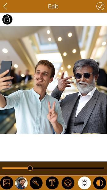 Selfie Dengan Rajinikanth memungkinkan Anda membuat foto selfie dengan selebriti favorit Anda dan Mengedit foto Anda dalam beberapa detik.