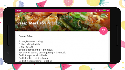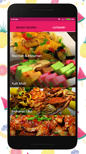 Tidak perlu bersusah payah membuka pelbagai website masakan di internet, tidak perlu lagi membeli majalah dan buku masakan kerana pelbagai resepi dalam poket anda. Antara koleksi resepi yang di paparkan adalah;