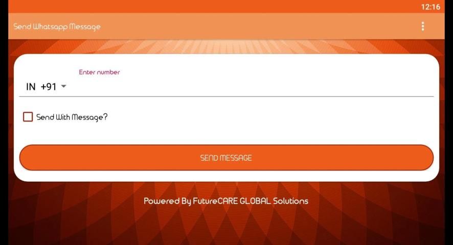 With this Send Whatsapp application you can easily send a message to anyone without saving contact numbers in your device. In daily life we visit many places for different kinds of work, sometimes we need to send some one-time data to any unknown person via WhatsApp or WhatsApp business but always we face a common issue to send data via WhatsApp firstly we need to save those unknown person's number in our device which we don't need in future. so after some meetings and affords finally our team release this app for all FutureCARE family followers.