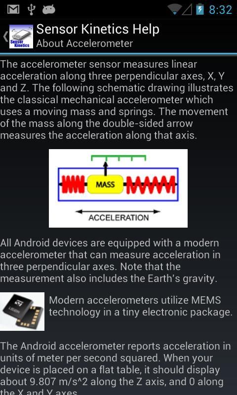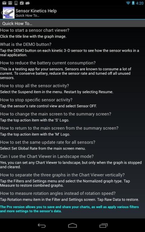 Untuk pengguna pendidikan, aplikasi termasuk file bantuan yang komprehensif yang menyediakan siswa fisika dengan tangan-on pengetahuan tentang bagaimana sensor ini berinteraksi dengan smartphone dan menyarankan berbagai eksperimen Anda dapat melakukan pada ponsel atau tablet.