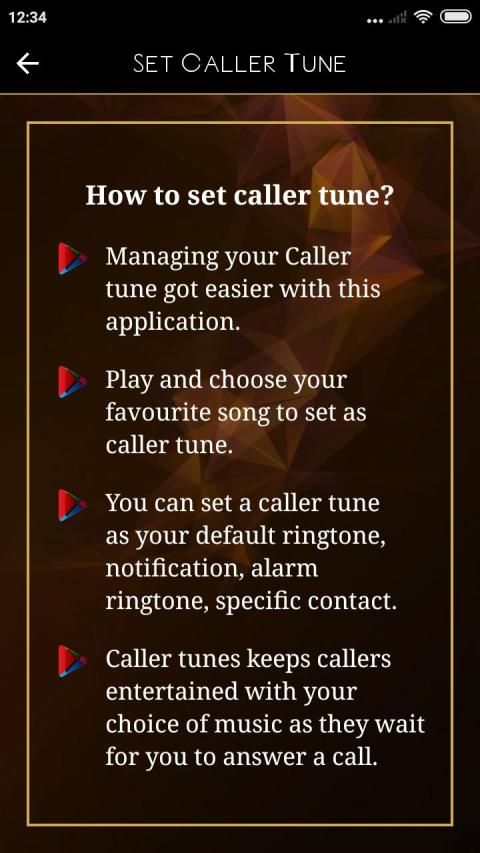 Set Caller Tune application has to set as favorite caller tune list with you can set your favorite ringtone later when you set as caller tune or caller ringtones with any celluler data