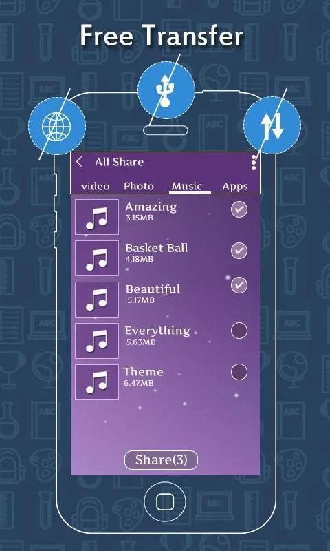 Saat ini mendukung aplikasi, video, musik, gambar, kontak, SMS dan jenis-jenis