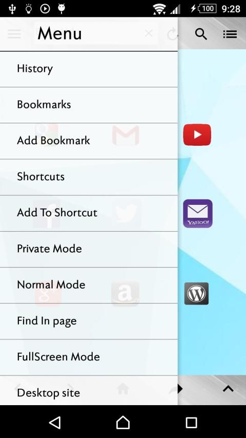 Bayangan Browser memiliki shortcut di mana Anda dapat menyimpan daftar situs web yang Anda kunjungi ikon frequently.It juga shortcut di home screen yang menyediakan akses cepat ke sejarah, bookmark.