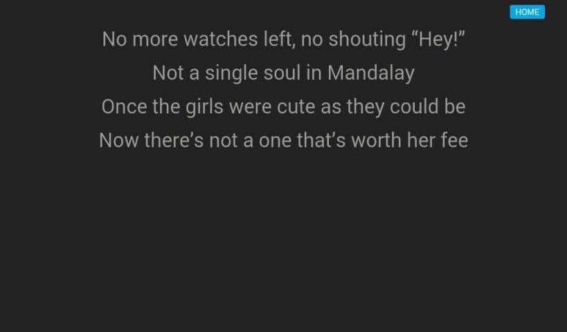 Lirik ditampilkan dalam modus layar penuh (landscape) untuk membuat untuk membaca mudah, tetapi ditampilkan sebagai lembut, teks putih pada latar belakang hitam untuk meminimalkan gangguan untuk penonton lainnya. Fitur lain dari aplikasi ini meliputi program digital untuk acara termasuk menjalankan perintah, biografi artis dan ‘balik layar’ film.