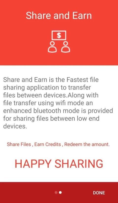 Berbagi dan Dapatkan, sebuah aplikasi yang membantu Anda untuk bertukar file antara file devices.Share di setiap format.Not hanya berbagi file, mendapatkan poin kredit ketika Anda berbagi file dan menebus kredit dalam bentuk mengisi ulang atau akun Paytm Anda.