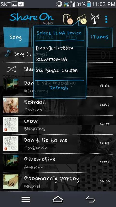 - Mendengarkan lagu di library iTunes Anda di ponsel Android Anda dengan memilih 'Share iTunes Music'.