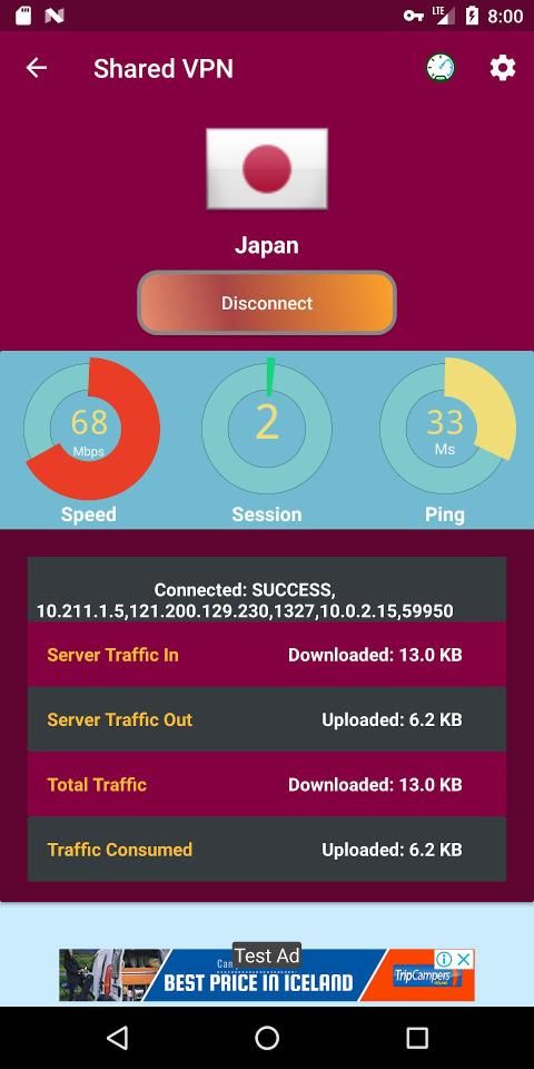 Shared VPN connect without username, password, registration, bandwidth limitation and any other special permission.