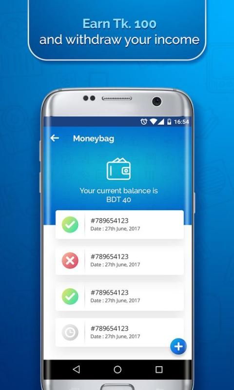 Menerima uang: Anda akan melihat jumlah Anda diterima di dompet. uang dapat ditarik seminggu sekali, melalui nomor yang disediakan diverifikasi bKash. Anda membutuhkan minimal Tk. 100 di Wallet untuk kas keluar dari setiap titik bKash terdekat. Panggil 16.516 untuk bantuan.