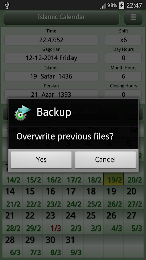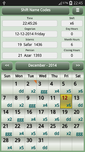 "Shiftcal" adalah "kalender shift" dan kalender tujuan umum juga.Jika Anda adalah pekerja shift, aplikasi ini akan membantu Anda mengatur waktu dan jam lembur Anda dengan cara yang lebih baik.Cukup berikan aplikasi dengan pola shift Anda dan ketika dimulai, aplikasi akan melakukan sisanya.