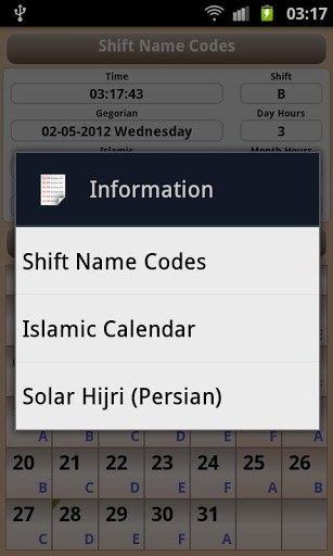 - Kalender Shift.