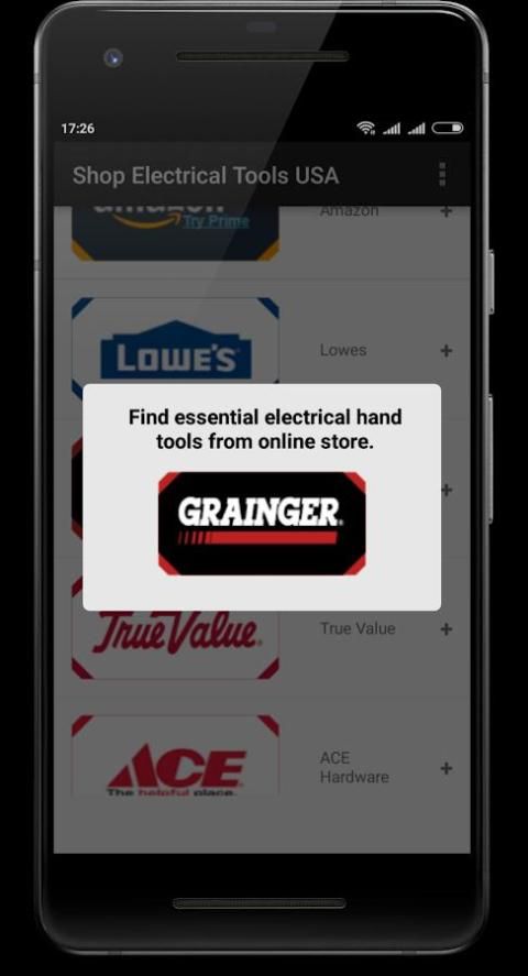 Toko Alat Listrik aplikasi yang user friendly APP, yang memandu Anda untuk membeli alat-alat listrik dengan mudah di negara Anda. Aplikasi ini mengarahkan Anda menuju banyak portal web terkenal untuk kebutuhan Anda. portal web terkenal yang termasuk adalah Alat Up, Amazon, Lowes, Grainger, nilai sebenarnya, Harbor Freight, Alat Barn, ACE Hardware, K Mart dan Wal Mart.