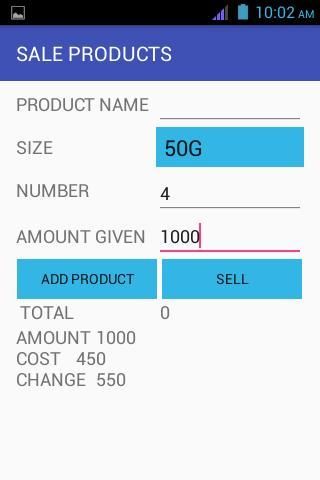 Anda juga dapat menjual satu produk atau banyak sekaligus. Untuk menjual lebih dari produk pada satu waktu hanya mengisi nama produk Ukuran dan jumlah lalu tekan 'ADD PRODUK' setelah menambahkan semua produk masukkan jumlah yang diberikan oleh pelanggan kemudian tekan 'SELL'