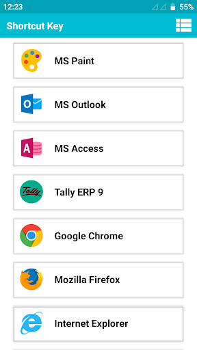 Categories of Shortcut Key :