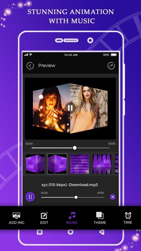 application which have all videos editing tools to make your videos story.get start to use this application with best options and you will edit all your image step by step so why are you waste your time on finding other application.this application will help you to change your simplest image into best little videos.