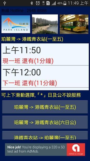 - To provide a quick way on checking shuttle bus schedule of the PI (Park Island). (by touching the bus schedule)