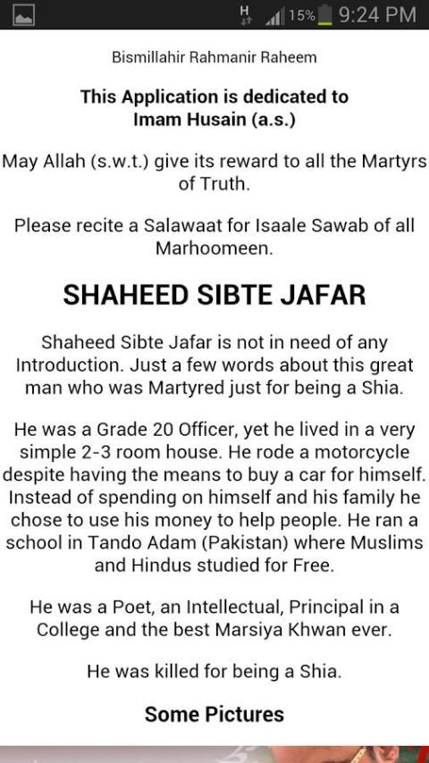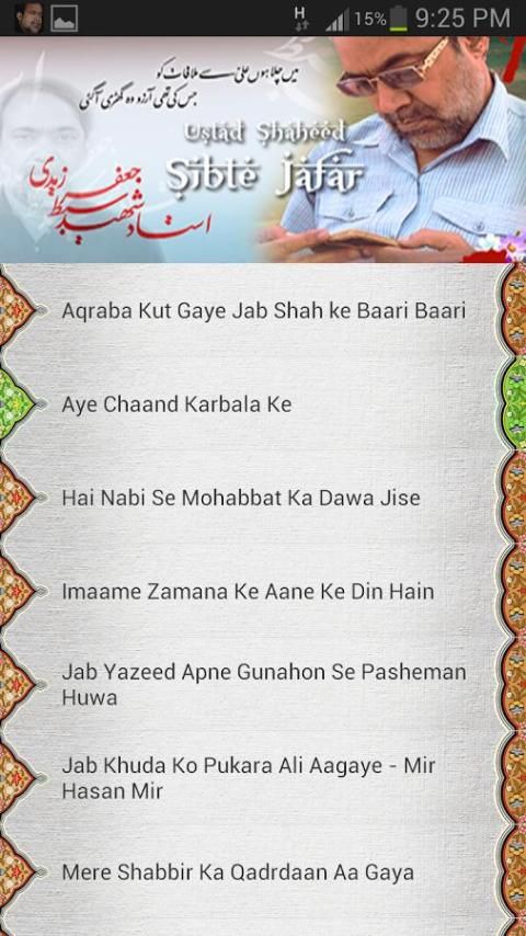 Nohey, Soz, Marsiye dari Shaheed Sibte Jafar Zaidi Sahab. Ini adalah App Pengunjung Audio yang berisi beberapa komposisi yang dipilih dari Shaheed Sibte Jafar Sahab.