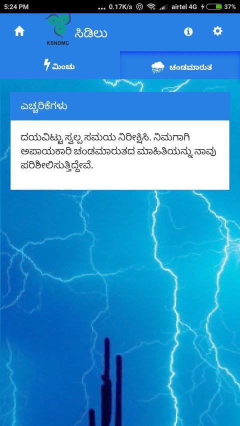 Memberikan Awal Layanan Peringatan (EWS) untuk Lightning di negara bagian Karnataka.
