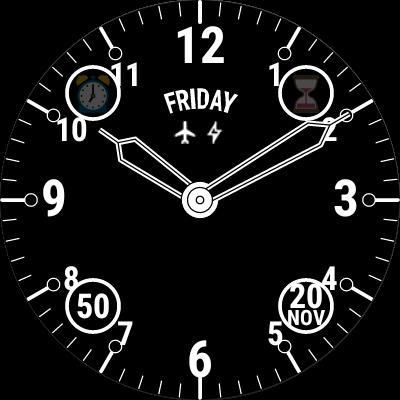 Sederhana dan baterai arloji ramah wajah, yang membantu Anda mengontrol waktu Anda. Tidak permintaan telepon untuk data. Satu-satunya nilai, yang didorong untuk menonton, ketika item data yang relevan diubah, adalah nilai baterai telepon. Fitur ini dapat dimatikan di pendamping mobile untuk memaksimalkan baterai jam tangan dan menghentikan layanan pengirim di telepon.