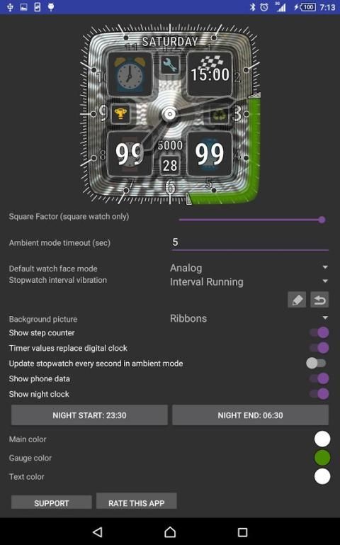 N.B. Harap perhatikan, bahwa aplikasi ini tidak widget! Aktivitas konfigurasi ini hanya tersedia dalam aplikasi Android Wear dengan jam pintar yang relevan dipasangkan dan dihubungkan ke telepon.