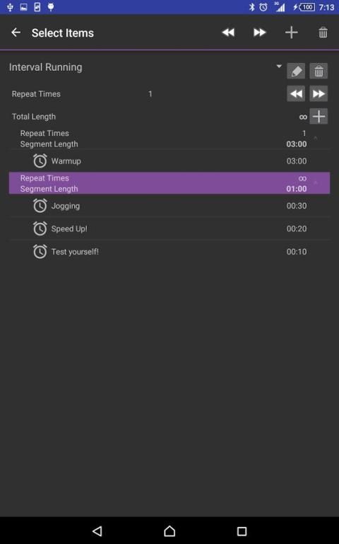 Ganda menyentuh widget yang sama, sementara tidak ada countdown aktif, mulai stopwatch. Tidak hanya itu memungkinkan Anda untuk mengukur waktu berlalu, tetapi juga memiliki pola getaran, yang terkait dengan beberapa kegiatan populer seperti protokol Tabata untuk pelatihan HIIT atau "Pomodoro" timer, yang membantu mengatur pekerjaan sehari-hari dengan cara yang efisien. yang sangat penting dari fitur ini adalah bahwa interval ini akan terus berjalan bahkan di latar belakang, sehingga Anda dapat mulai stopwatch dan kemudian melanjutkan pelacakan dengan aplikasi kebugaran favorit Anda. konfigurasi Wearable utilitas (tekan lama watchface, lalu ketuk tombol gigi bawah gambar preview) memungkinkan untuk perubahan cepat interval stopwatch bahkan ketika tidak terhubung ke ponsel. Pengguna Interval konstruktor memungkinkan untuk mengelola daftar dan membuat definisi kustom.
