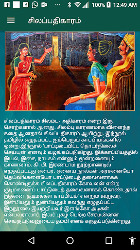Silappathikaram - Kisah gelang permata, berakar pada kehidupan biasa Tamil awal Kerajaan Pandyan pada abad pertama A.D. Dan dianggap oleh banyak orang sebagai epik nasional orang-orang Tamil.