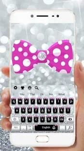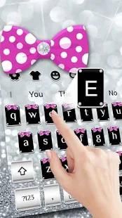 Silver bow keyboard with beautiful diamond glitter wallpaper and pink bow application icon.
