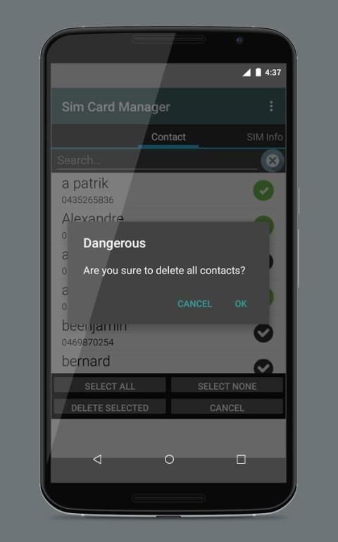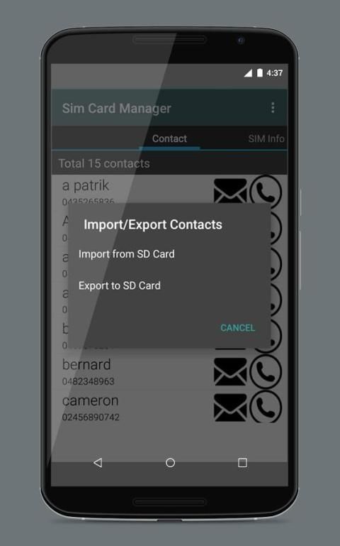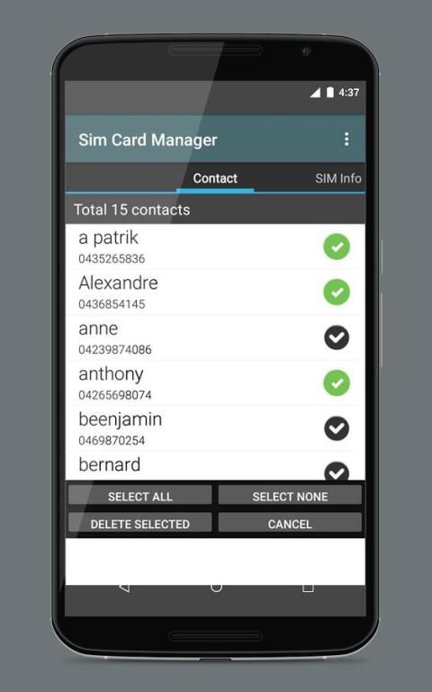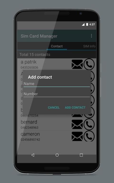 Aplikasi ini merupakan salah satu langkah untuk lengkap Detail kartu sim, maka sim Manager adalah alat kecil yang bertuliskan kartu sim Anda dan memberi Anda banyak informasi bermanfaat. Hal ini juga membantu Anda untuk mengelola kontak di Anda sim Card, Anda dapat melihat semua kontak Anda yang tersimpan di kartu sim, membuat kontak baru (toko untuk sim card), memodifikasi kontak atau menghapus kontak (s).