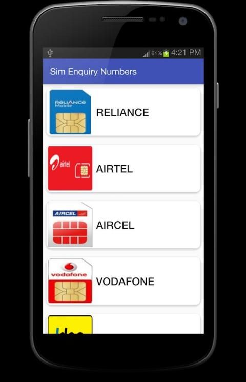 Sim Enquiry Numbers aplikasi membantu pengguna telekomunikasi prabayar India untuk menemukan angka-angka untuk operasi tertentu.