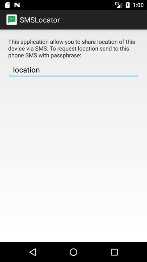 On first run, you setup pass-phrase. After you can sent SMS to this phone from another with this pass-phrase. In response you receive two sms link to Google maps, pointed to location of phone: