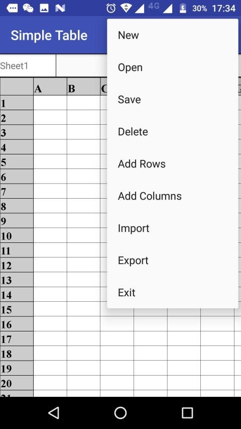Aplikasi ini dapat digunakan untuk membuat dan meja terbuka. Anda dapat membuka file excel dengan app.In ini aplikasi ini, Anda dapat membuat tabel baru dan mengeditnya, dan Anda juga dapat menyimpannya. Dengan aplikasi ini, Anda dapat mengedit tabel mudah di ponsel Anda.