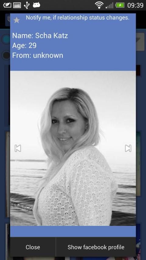 Searcher tunggal adalah searchengine facebook Anda untuk menemukan cinta yang besar. Cari di facebook untuk single-perempuan dan single-orang di daerah Anda. Anda dapat memilih usia, lokasi dan jenis kelamin pencarian Anda. Searcher tunggal menunjukkan status hubungan semua teman facebook Anda. Melihat semua foto profil dan mulai genit dengan beralih langsung ke aplikasi facebook.
