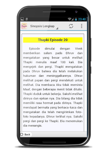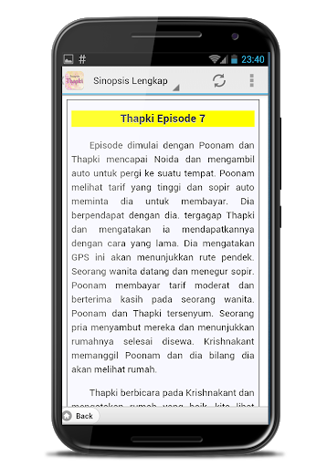 Nikmati rangkuman dalam bentuk teks dari seluruh serial Drama India Thapki dari Aplikasi ini. Mulai dari episode 1 sampai episode terakhir. Update setiap hari.