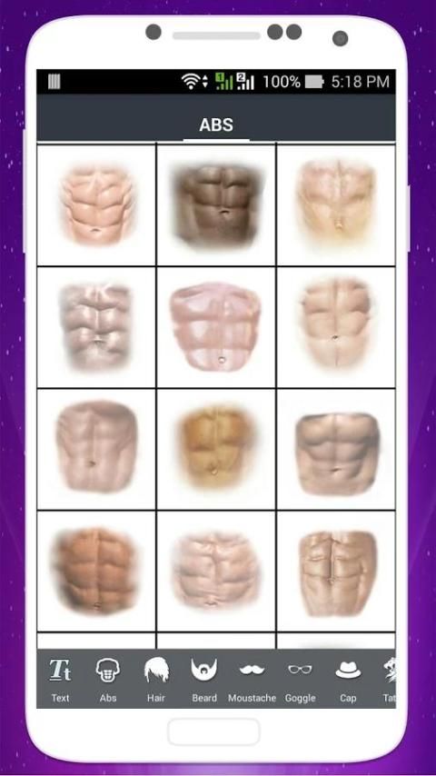 Six Pack Photo Editor aplikasi berisi berbagai jenis six pack abs